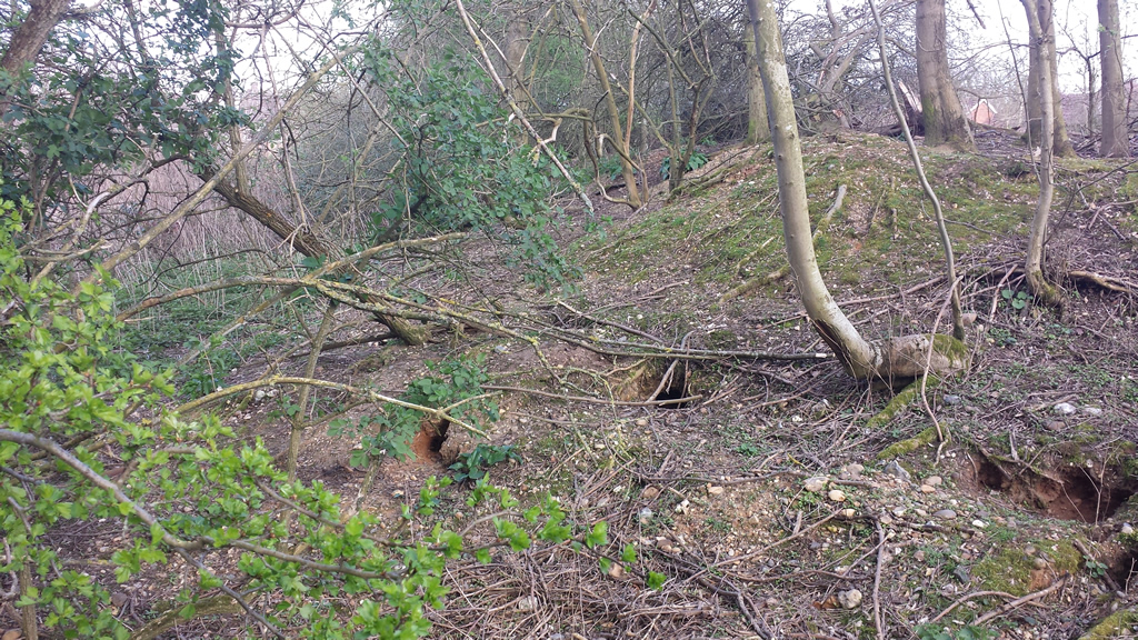 Setts are usually found on sloping ground where there is some level of cover from surrounding vegetation such as next to woods and copses.